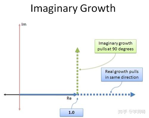 • 虚数轴上的增长永远为 90 度方向上的增长