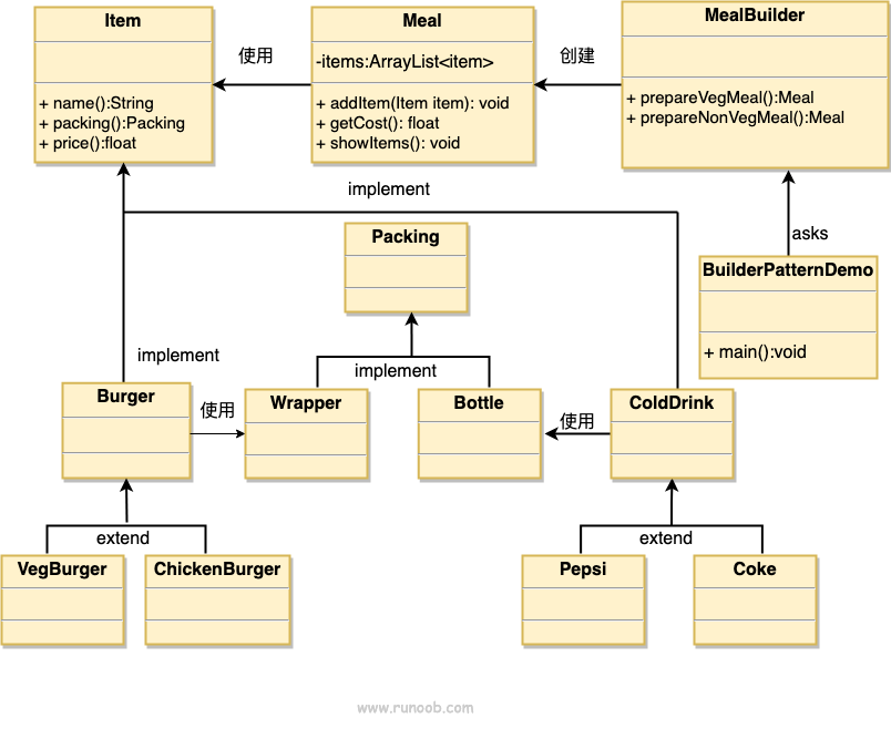 - Meal 提供了合成目标对象的方法,也同时管理各个 Item 在 Meal 中的结构